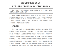 寶明科技關(guān)于終止馬鞍山寶明科技復(fù)合銅箔生產(chǎn)基地項(xiàng)目的公告